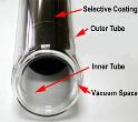 thermal shock resistance. The outer side of the inner tube is coated with a sputtered solar selective